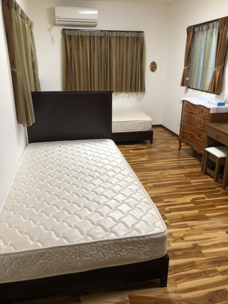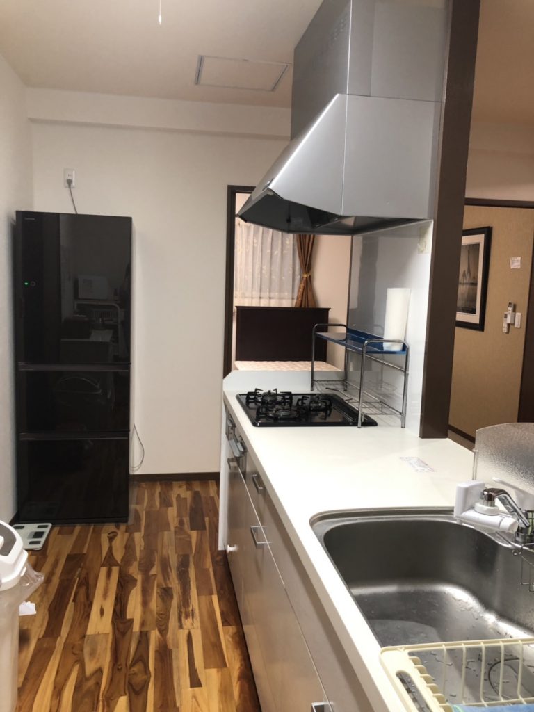 | 備品 | 鍋, フライパン, ボール, まな板, 包丁, オタマ, フライ返し, 食器かご, お茶碗(汁・米用), お皿(大・小), マグカップ, グラス, スプーン(大・小), フォーク・ナイフ, お箸, コンロ(2口), 缶切り+オープナー付, バスタオル, フェイスタオル, トイレブラシ, シングルベッド, 敷パット, 掛布団・枕, 掛敷布団・枕, ダイニングテーブルセット, テーブル, ソファー, カーテン, 時計, 鏡, ハンガー, 物干し竿・紐, ゴミ箱(大・小1個), 洗濯ばさみ |